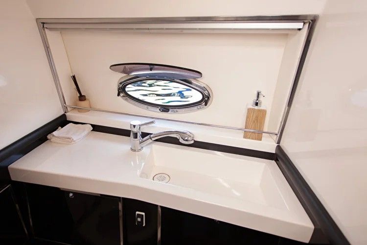 Огромный кокпит идеально подходит для шикарного отдыха и шумной вечеринки. С Black Boat Вы наблюдаете за звездным небом в просторной носовой каюте с панорамным остеклением. Уютная каюта под кокпитом укрывает от суеты и приглашает насладиться спокойным отдыхом.