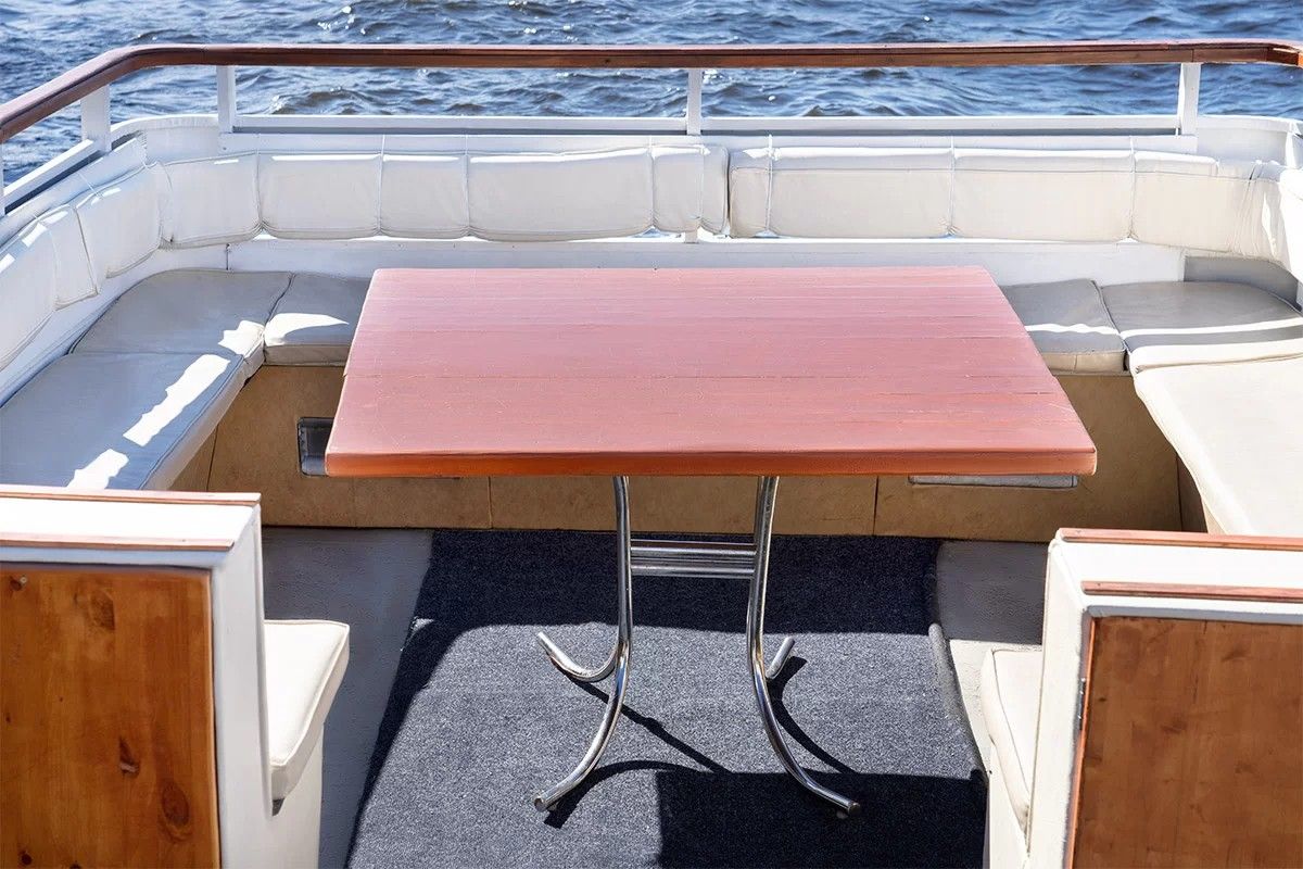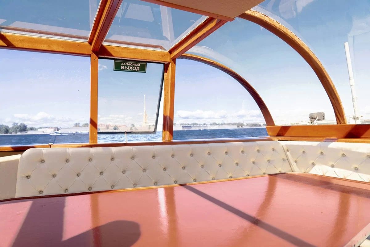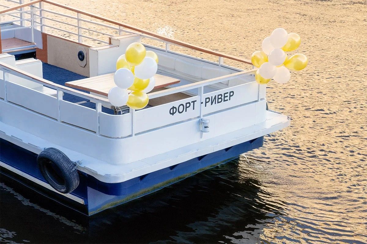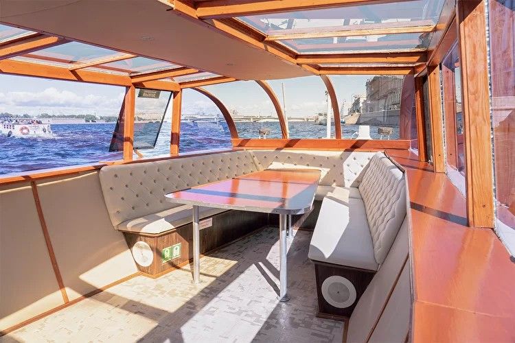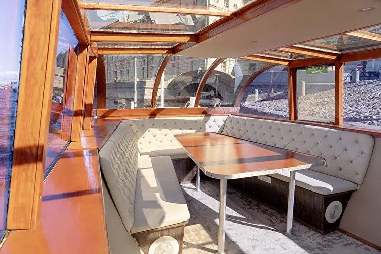 - Открытая площадка, с возможностью разместить стол, а также устроить танцпол на корме судна.