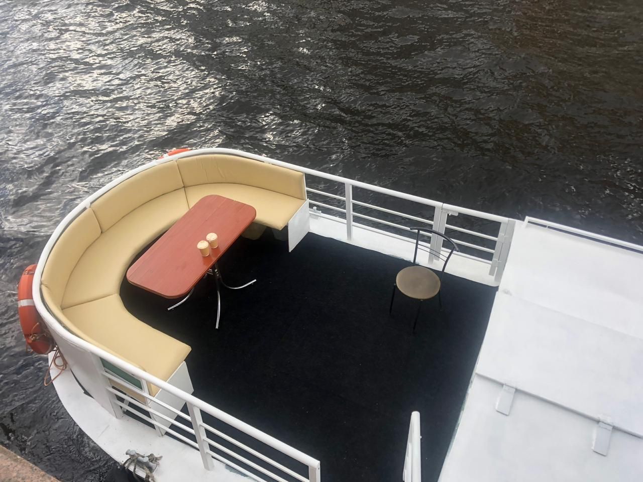 - Открытая площадка, с возможностью разместить стол, а также устроить танцпол на корме судна.